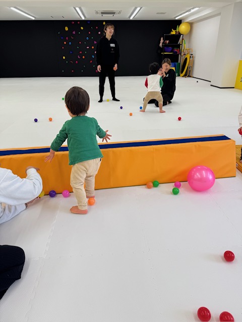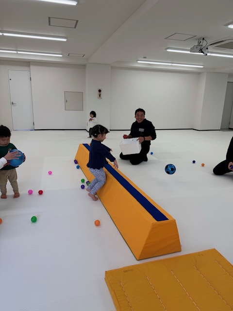 カラーボールを使った遊びなどをコーチと一緒に楽しみながら取り組んでいきます。